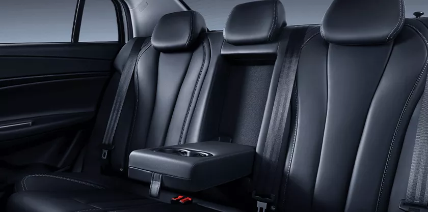 Bancos revestidos com acabamento premium na cor preta.